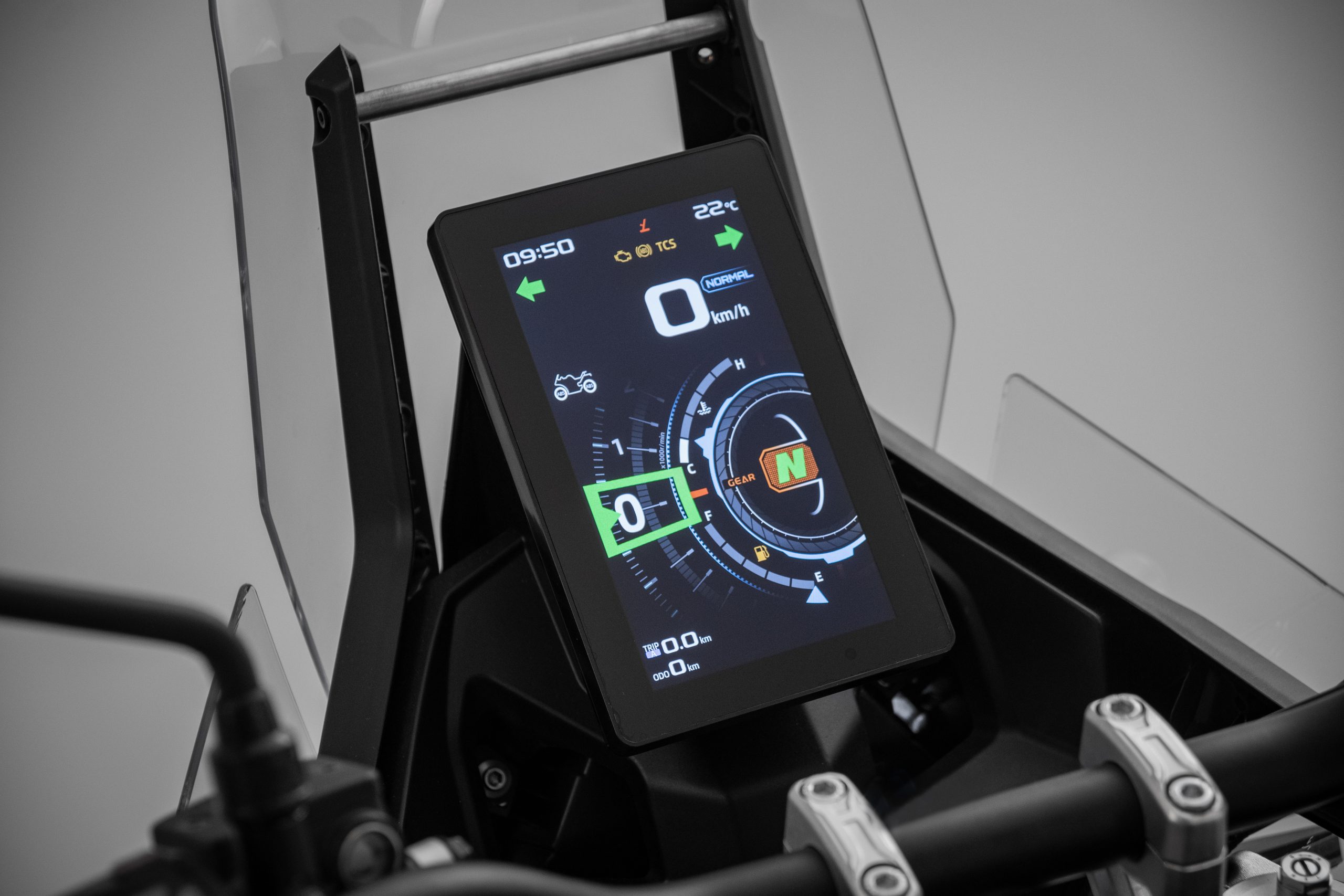 Η τεχνολογία σε βάζει στην καρδιά της περιπέτειας: φωτιστικά FULL LED για άψογη ορατότητα, έγχρωμη οθόνη TFT 7″ με πλήρεις ενδείξεις, συνδεσιμότητα Bluetooth, mirroring πλοήγησης και ενσωματωμένη DASH CAM για καταγραφή των διαδρομών σου. Ο συμπλέκτης ολίσθησης προσφέρει ομαλές αλλαγές ταχυτήτων, ενώ τα NISSIN ακτινικά φρένα και το ABS τελευταίας γενιάς, πλήρως ρυθμιζόμενο, εξασφαλίζουν ισχυρό και ελεγχόμενο φρενάρισμα.